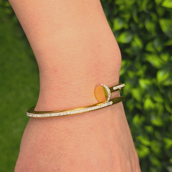 18K Gold Plated Nail Design Bracelet with CZ Stone – Anti Tarnish