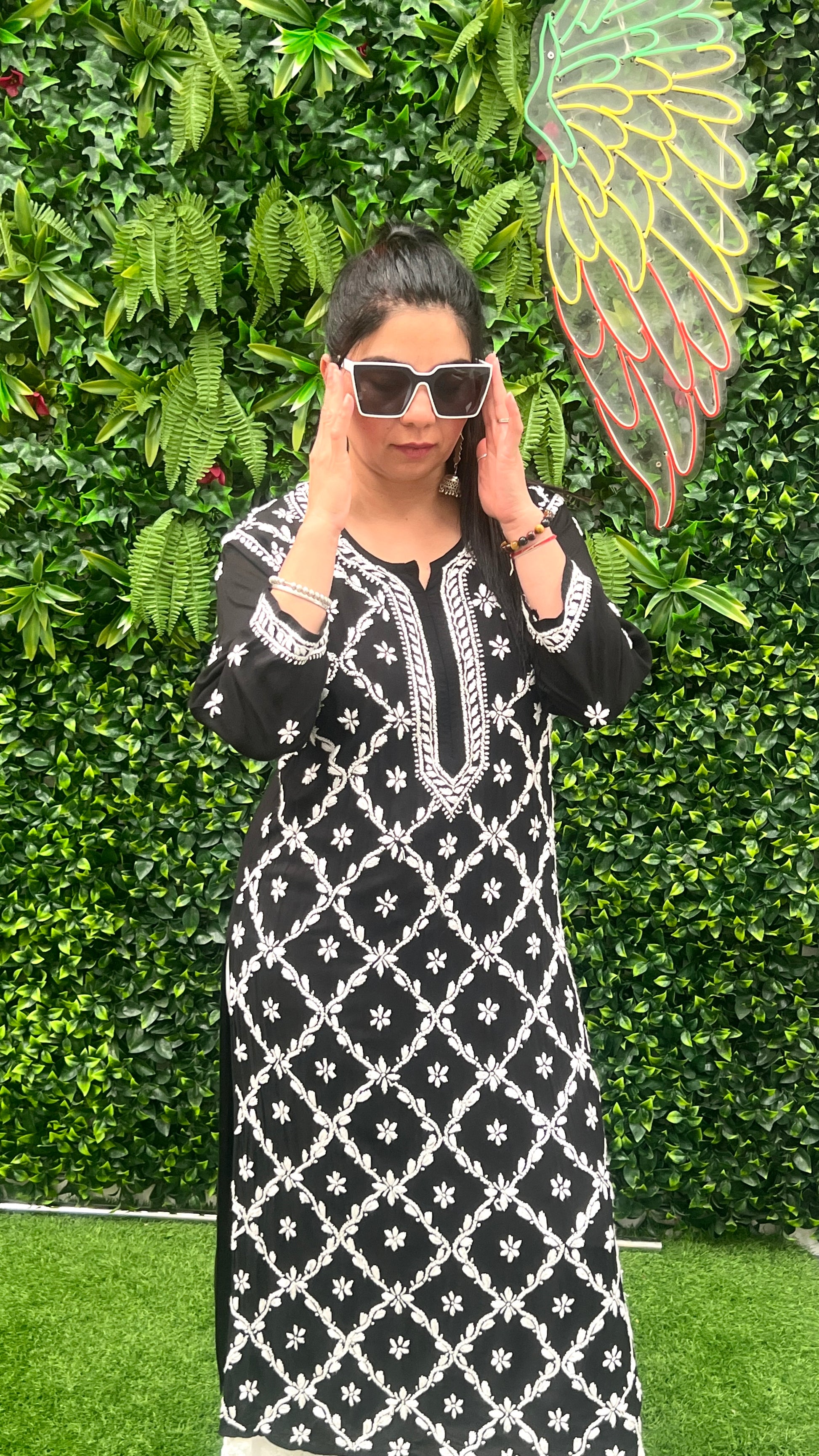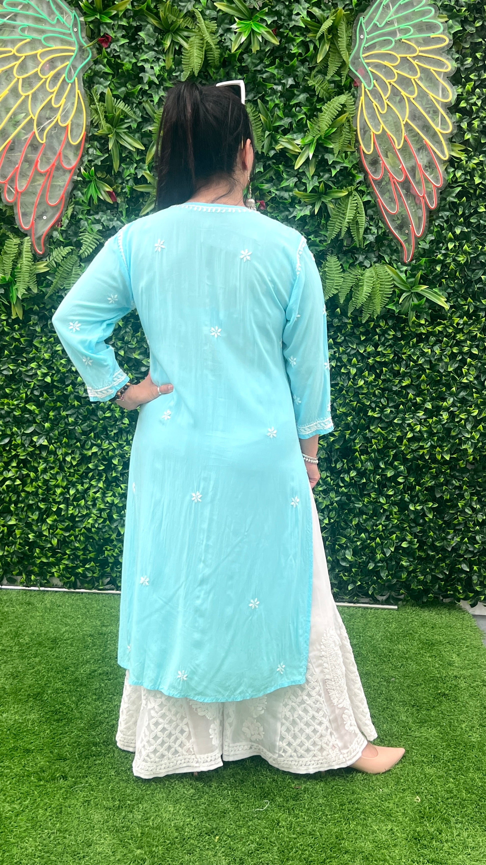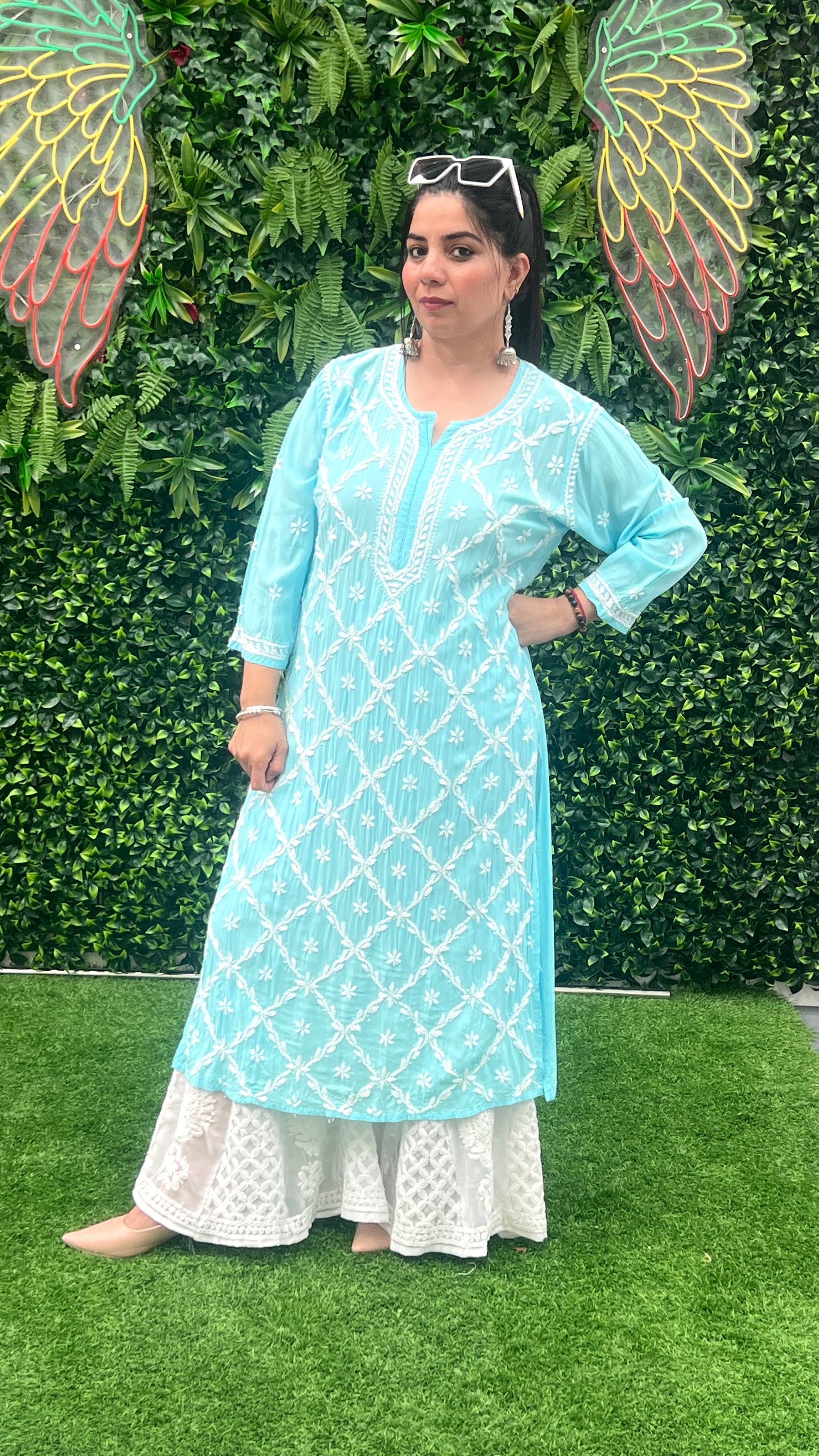 Enhance your wardrobe with this refined Modal Kurta, beautifully adorned with a full Jall handwork in Lakhnavi Chikankari. Crafted from luxurious modal fabric, it provides a soft, comfortable feel, offering effortless style for any occasion.